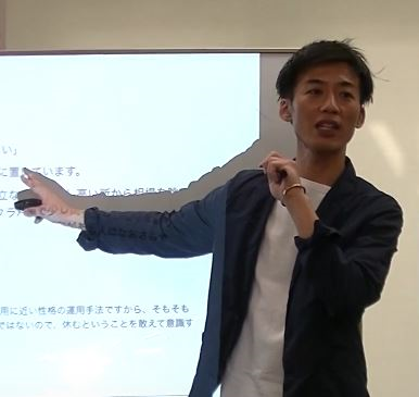 FXスクールでは、FXをストレスなく安定的な技術にしたいと全国から彼の話を聞きに来る。